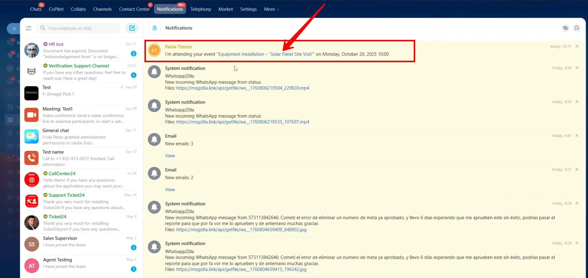 15. Go to “Notifications” and click on the event notification to open and view its details again.
