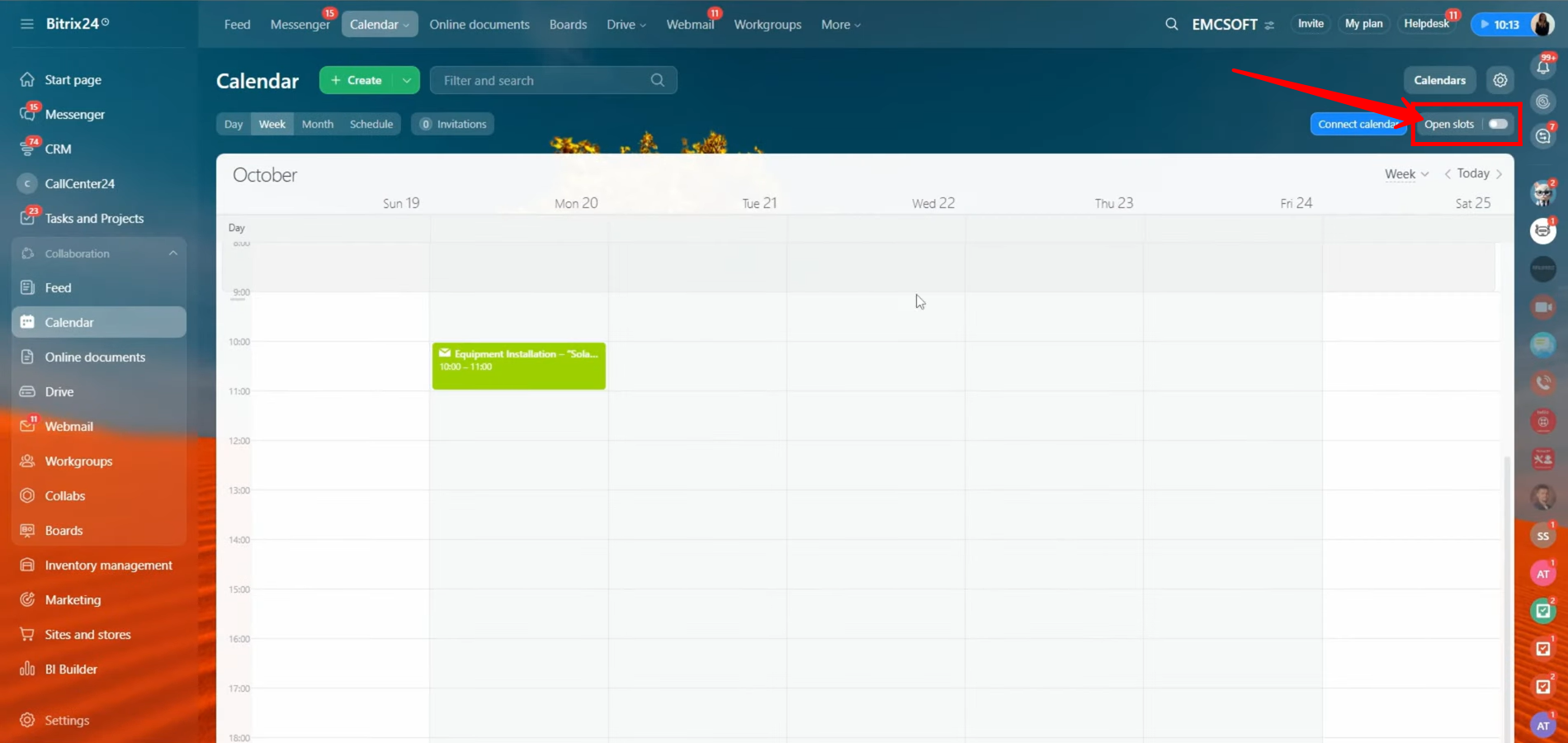 To begin, turn on the “Open Slots” toggle within your calendar window. This feature enables you to define and share your available time periods for meetings or consultations.