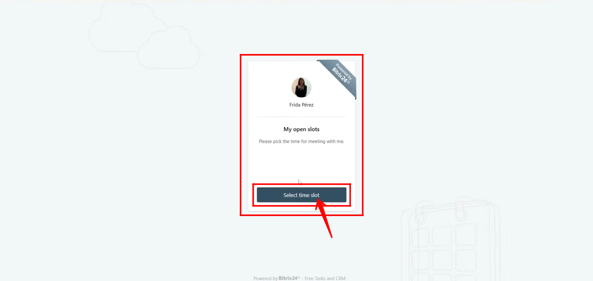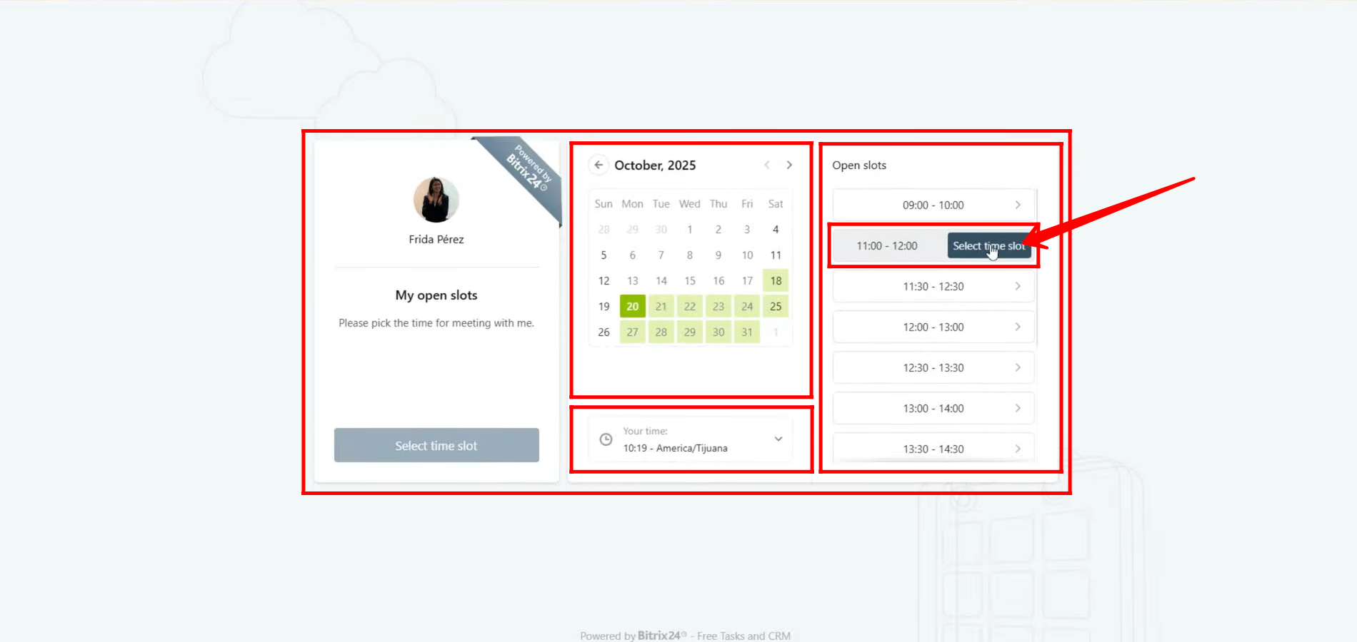 22. Once the client opens the Open Slots link, they will see a window prompting them to select a time slot.