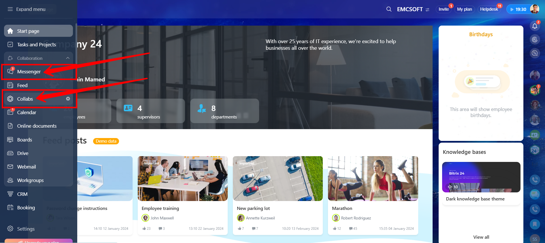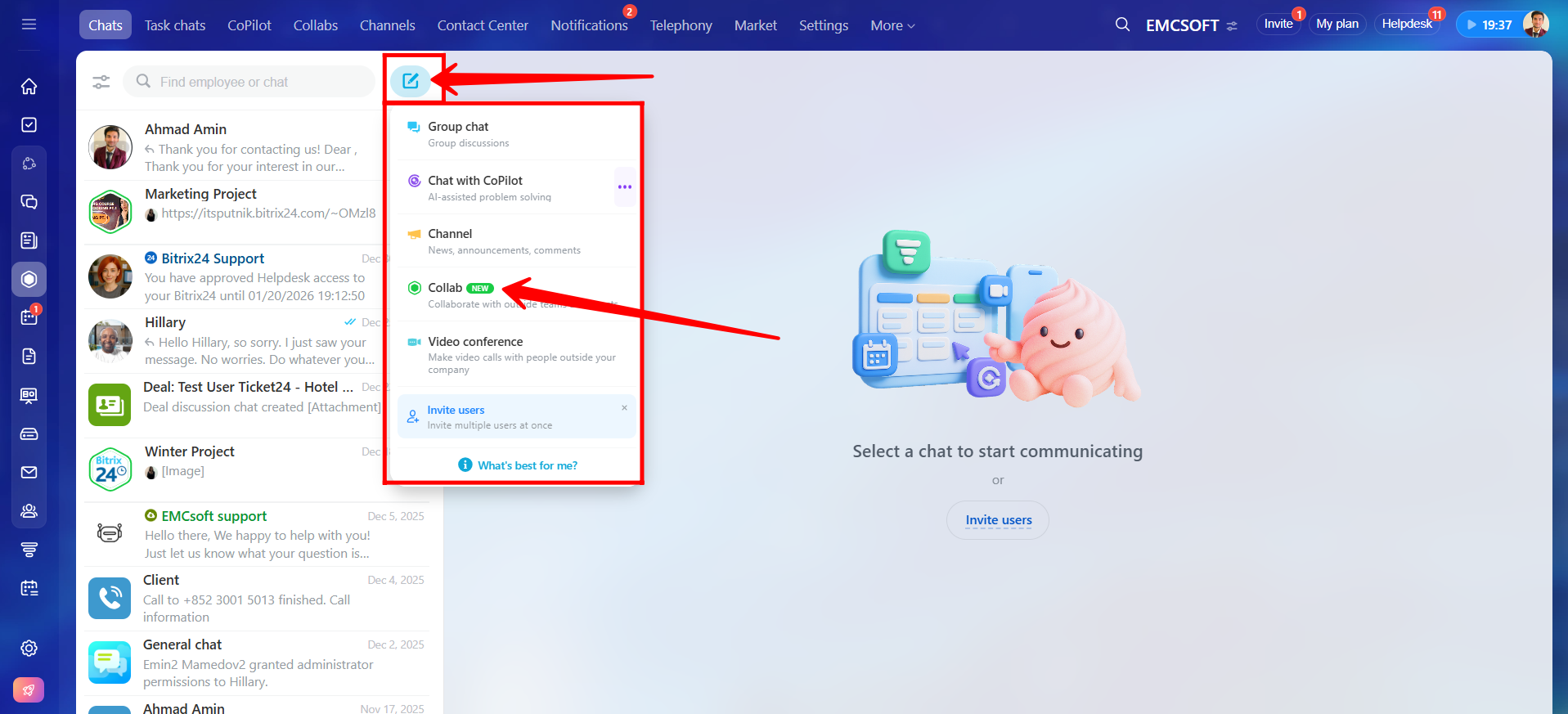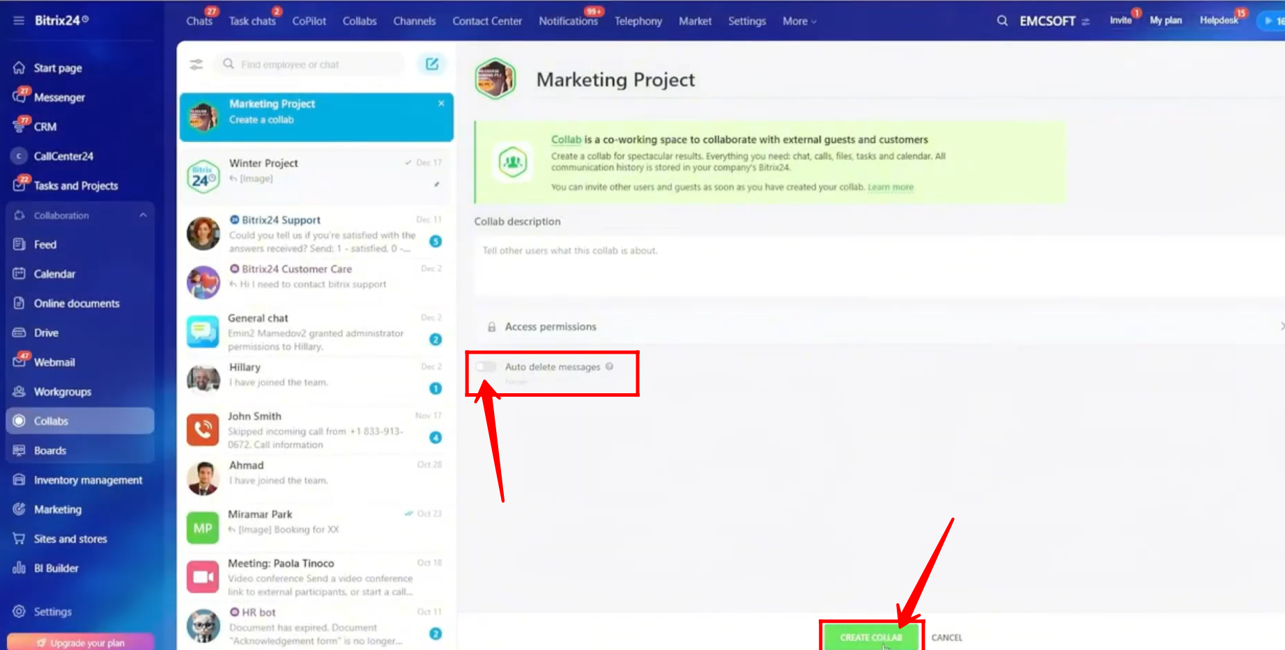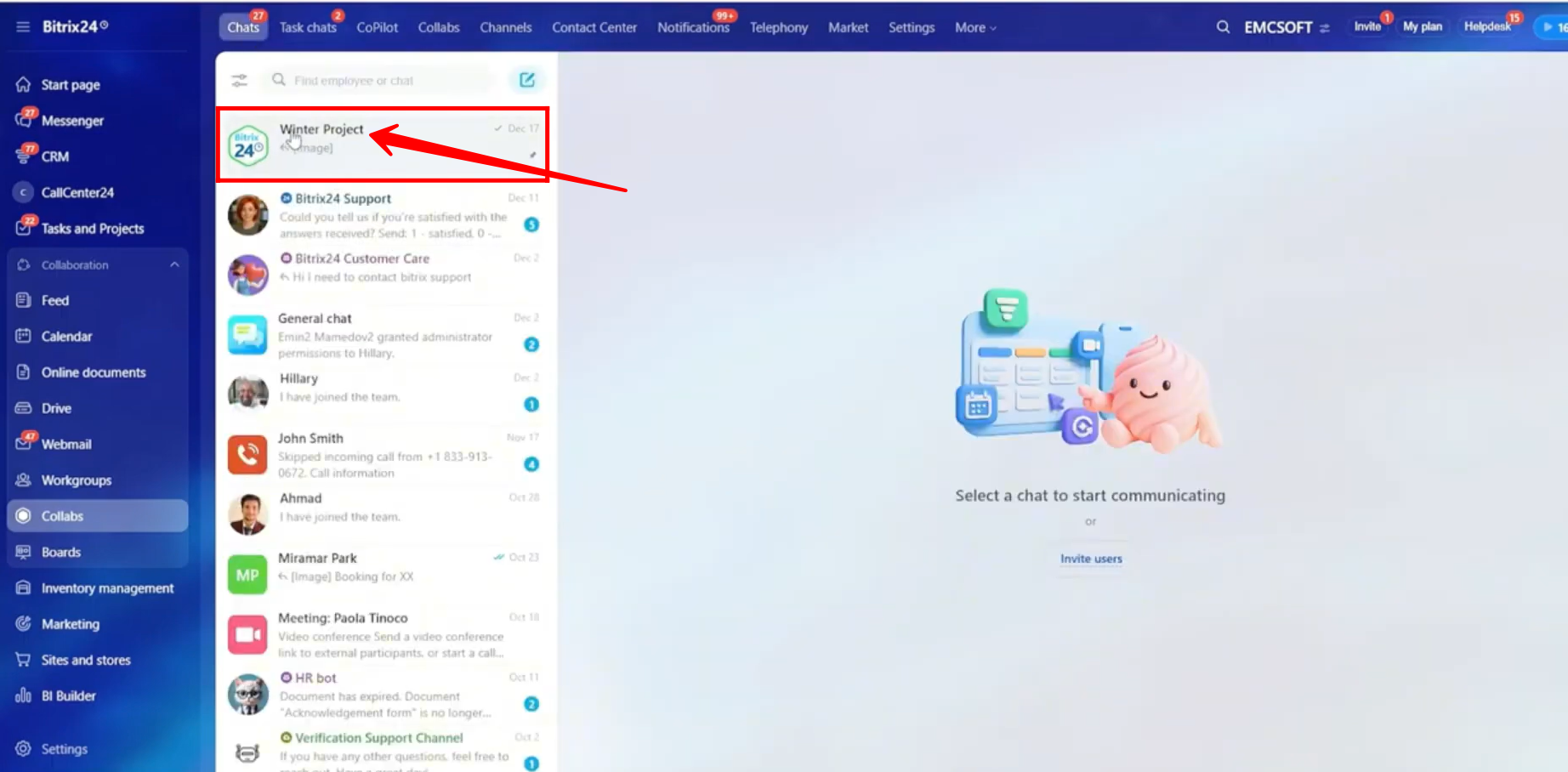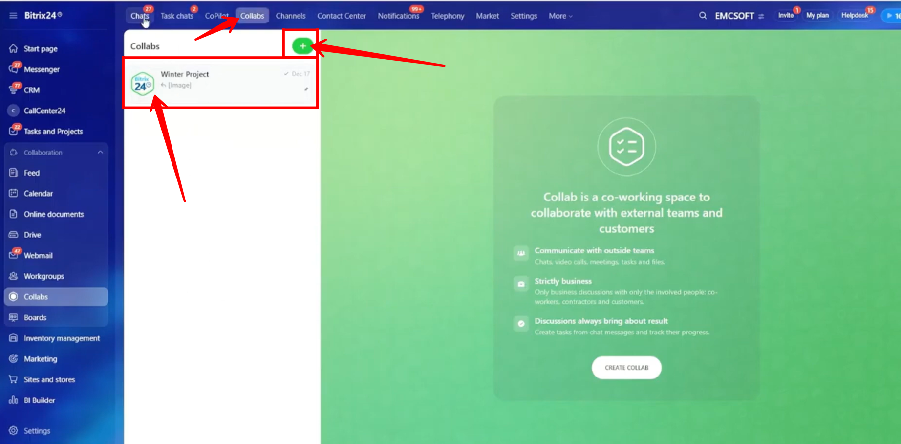 1. Go to Messenger or Collabs in Bitrix24. Collab chats can be accessed from either navigation option.