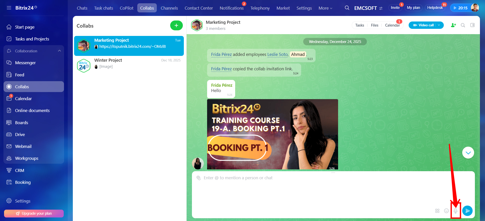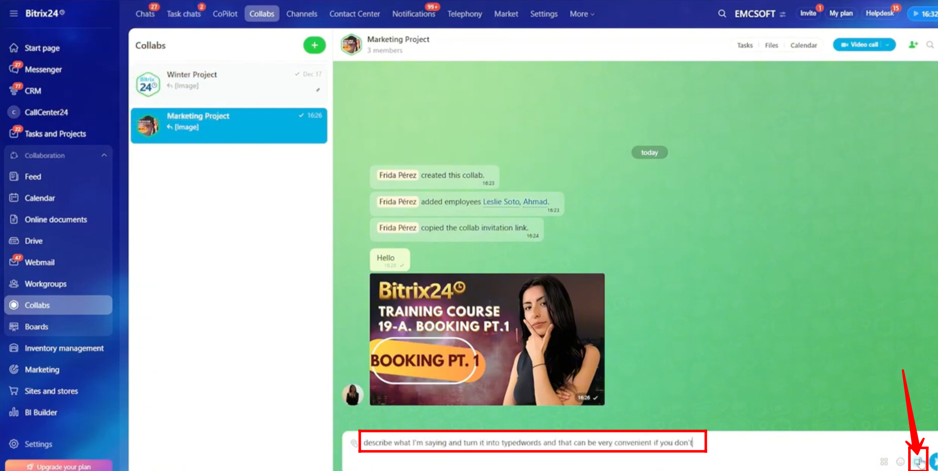 27. In the chat input window, click the highlighted microphone icon.
