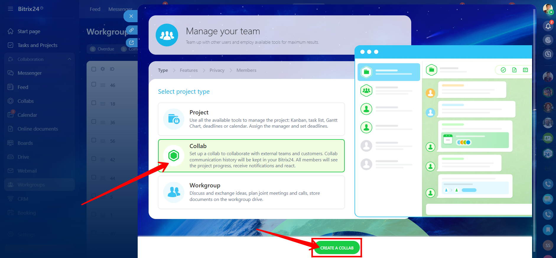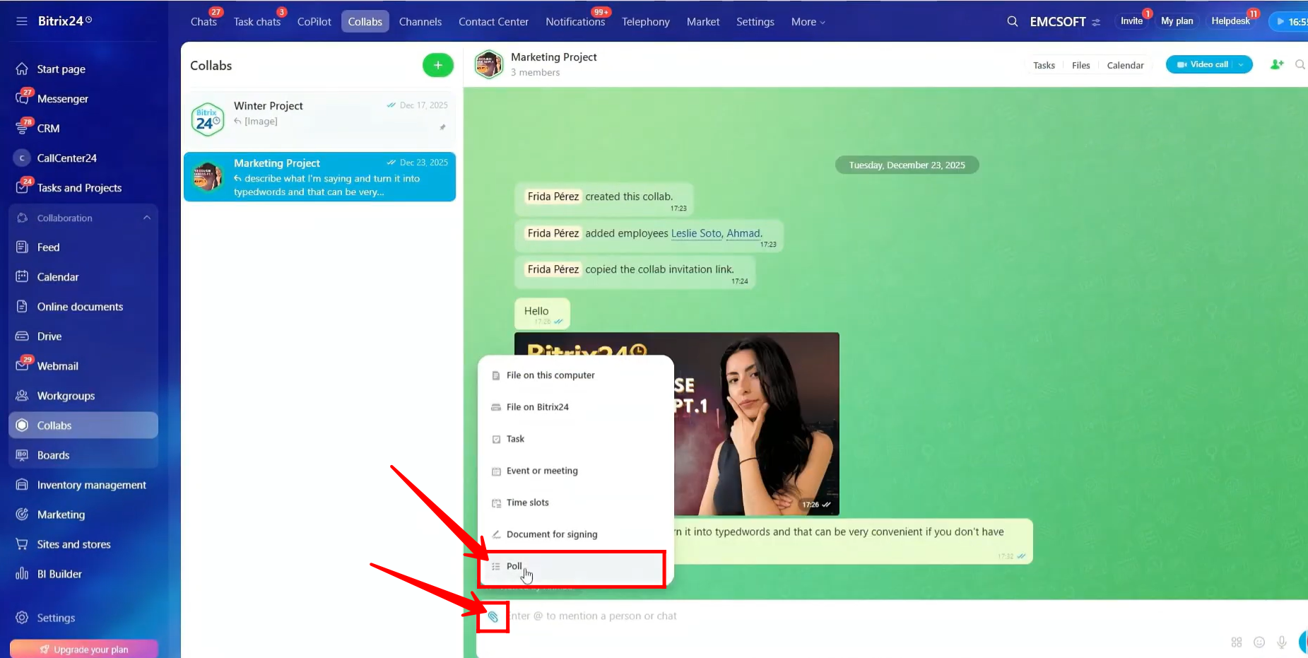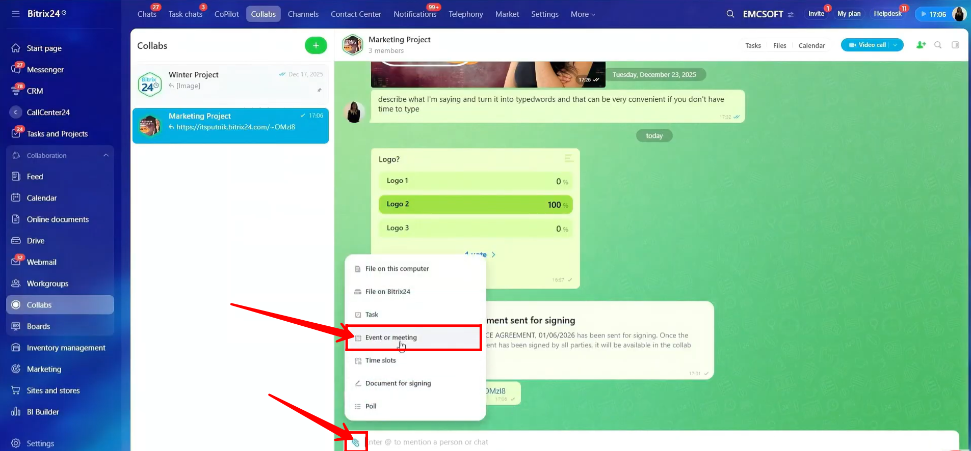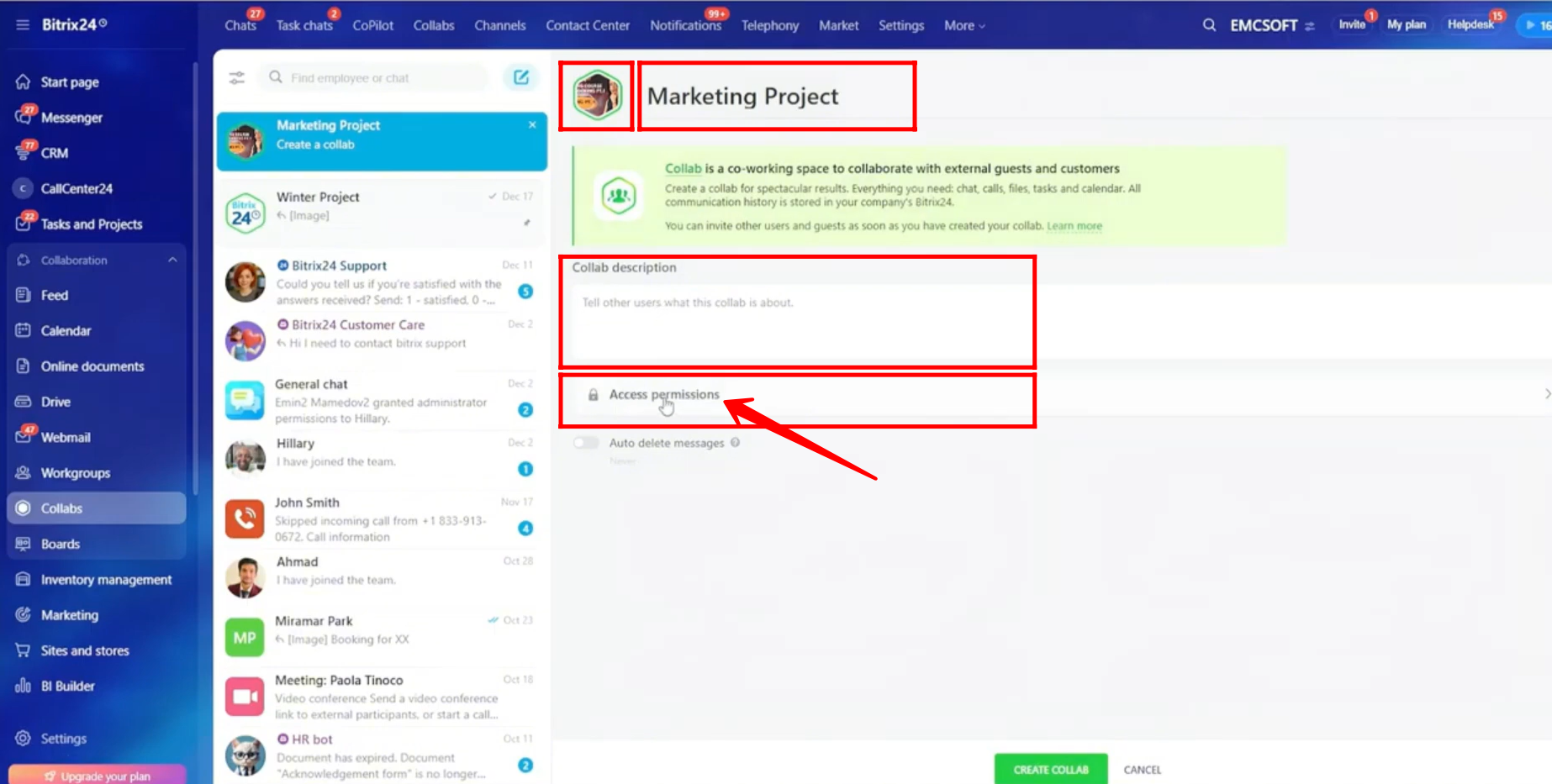 In this guide, we will walk through how to create and manage a Collab in Bitrix24. You will learn how to set access permissions, invite internal users and guests, share files, create tasks, schedule meetings, and use built-in tools like polls, calendars, and document signing.
