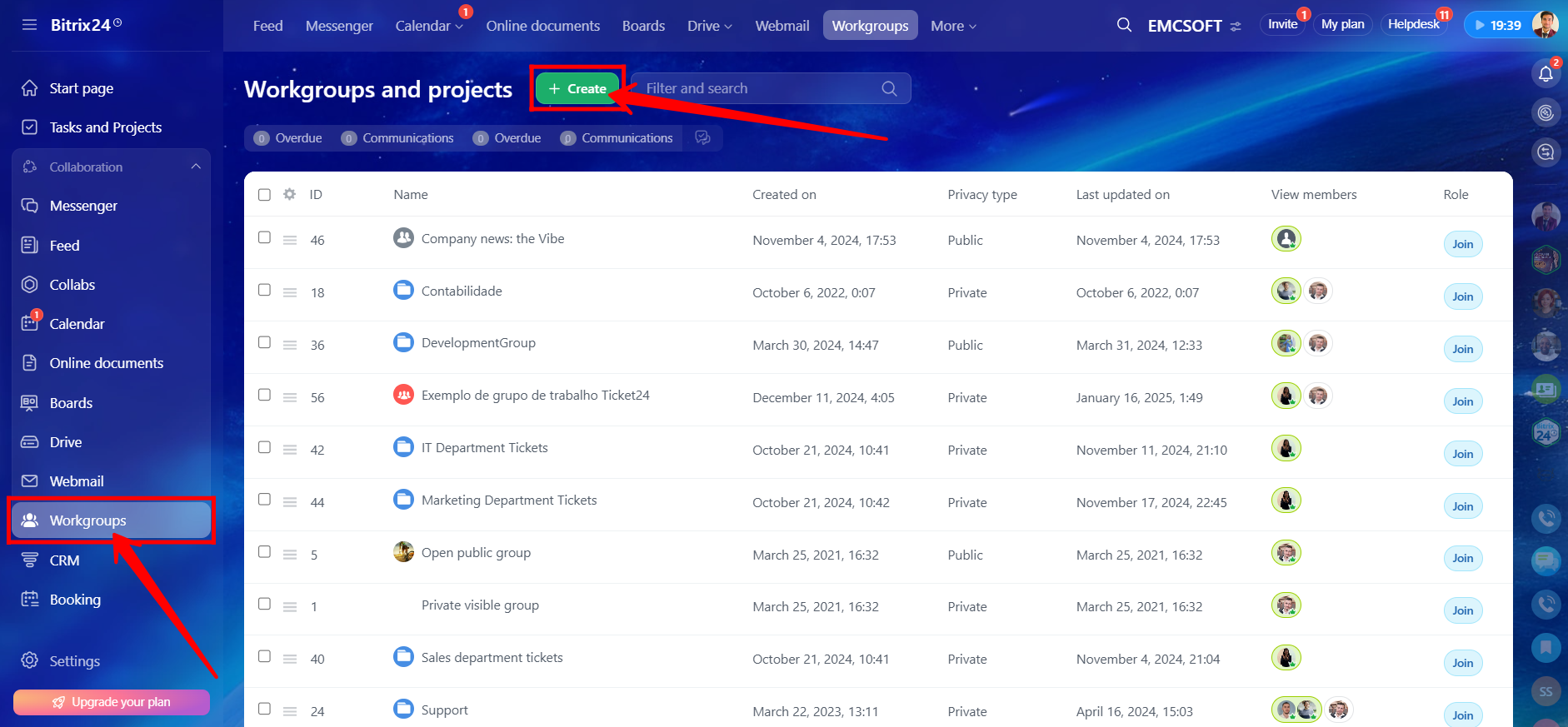 5. Another way to create a collab is to go to Workgroups and click “+ Create.”